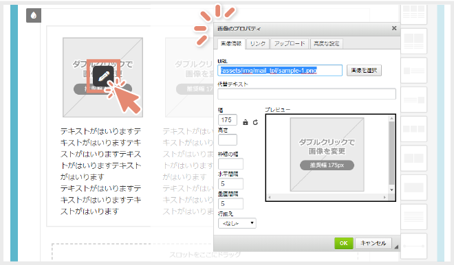 かご落ちメールデザイン編集画面
