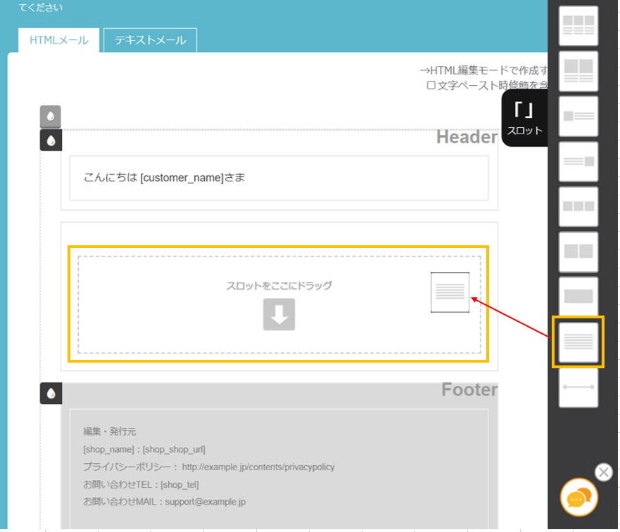 その他エリアは編集可能エリアとなっており、テキストサンプルがセットされていますが、スロットを使って自由に編集が可能です。