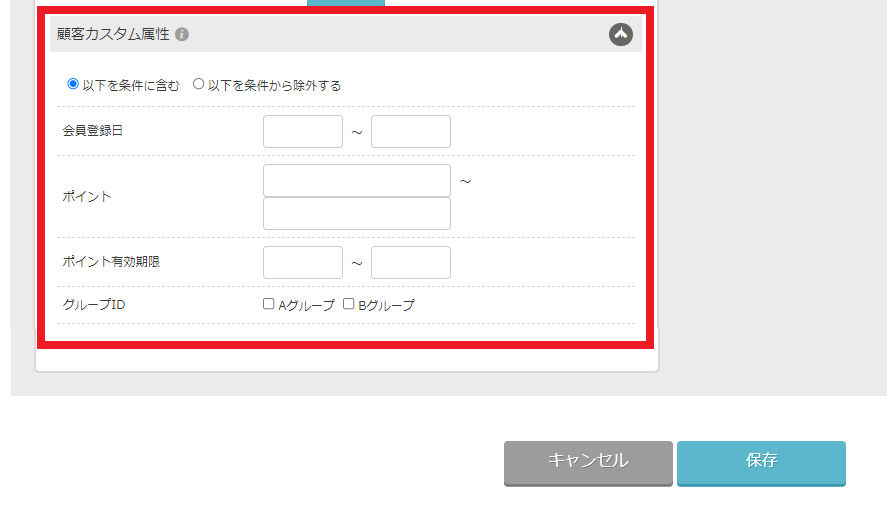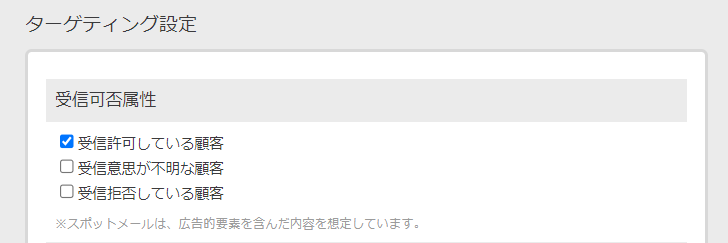 ターゲティング設定で選択できるのは受信可否属性のみ |