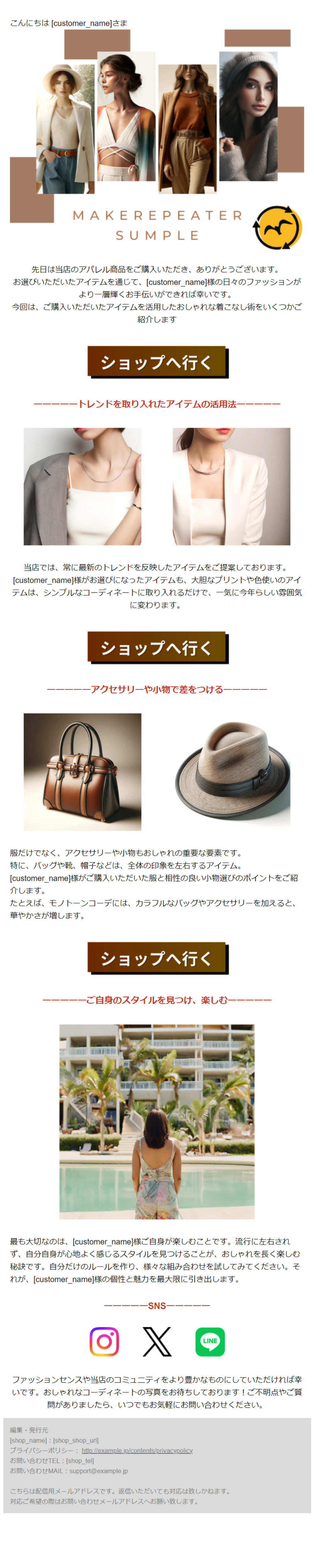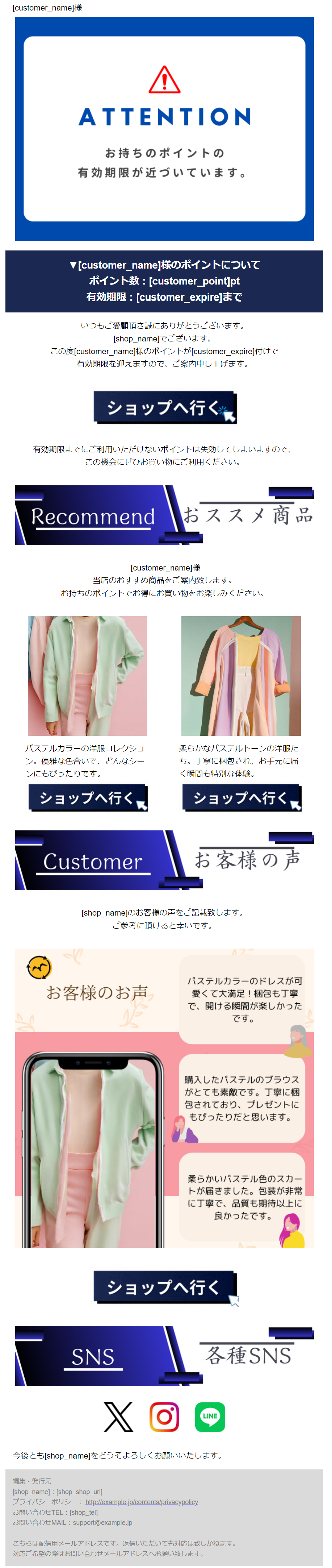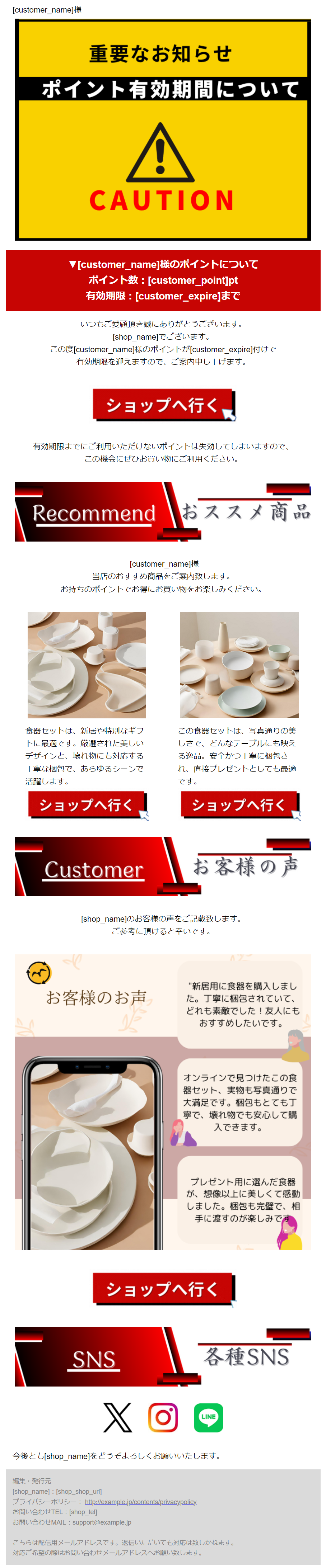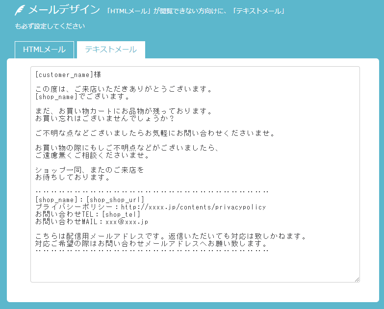 テキストサンプルがセットされておりますが、配信前にはテキストメールの内容も必ず編集・確認をしてください。