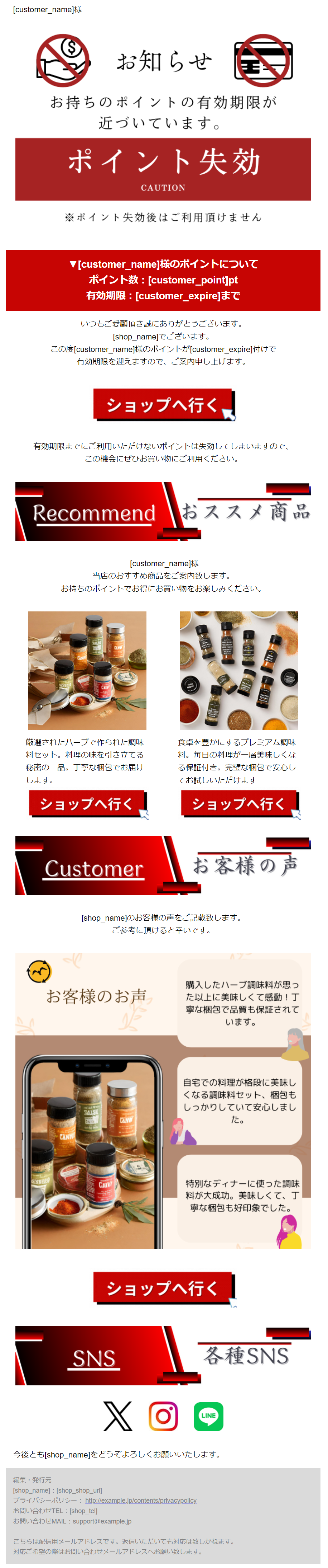 テキストメールには、かご落ちの商品情報が挿入できないので表示されません。