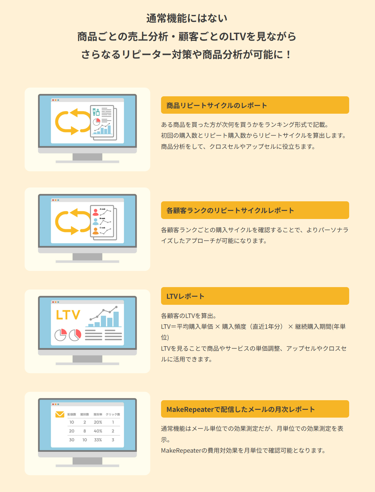かご落ち商品再訴求して離脱客を呼び戻し、購入を促せるので、効果的に売上アップが目指せます。