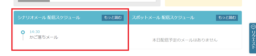 ・ダッシュボード(トップ画面)下部:シナリオメール配信スケジュール