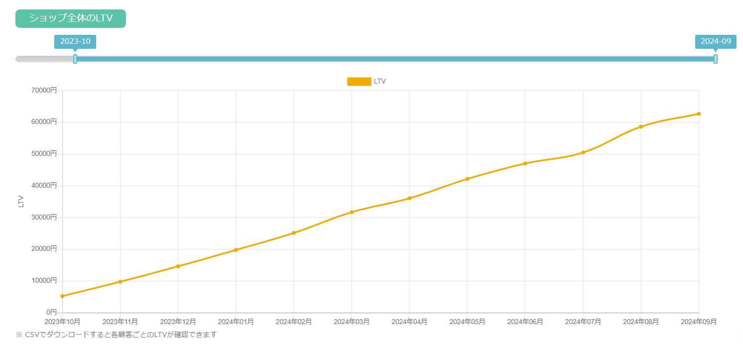 CSVデータでは、各顧客ごとのLTVが確認できます。