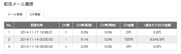 CV※3(数、配信数に対してのCV率、開封数に対してのCV率、CV金額)、