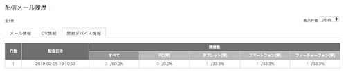 ・開封デバイス情報タブ内がすべて0の場合には、画面上部のグラフエリアにデバイス別の開封率グラフは表示されません