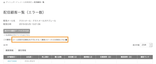 「受信エラー数」の顧客数をクリックで、エラーとなった顧客リストが表示され、