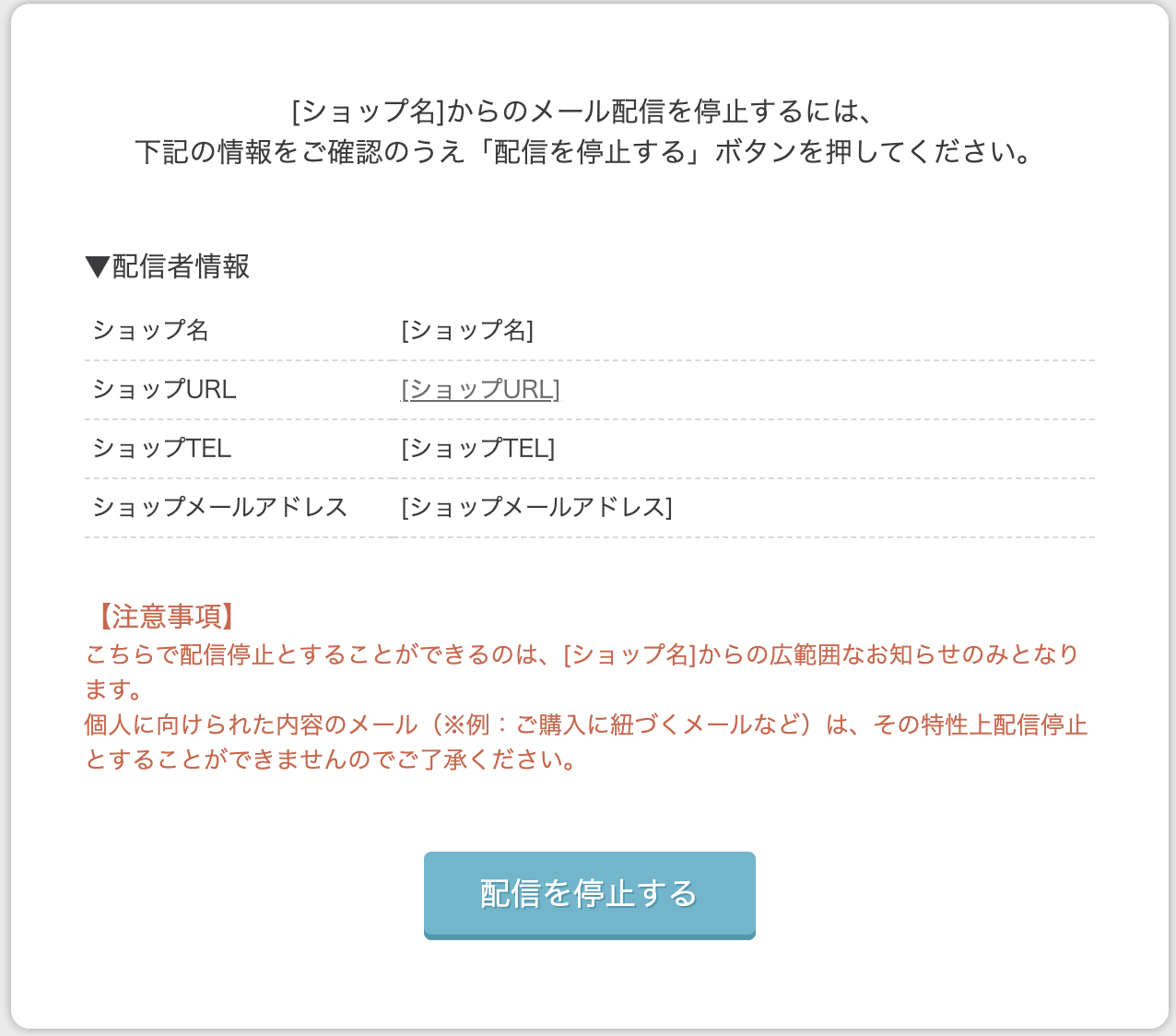 詳しくはスポットメールのフッターにデフォルトで記載の配信停止へのリンクについてもご参照ください。